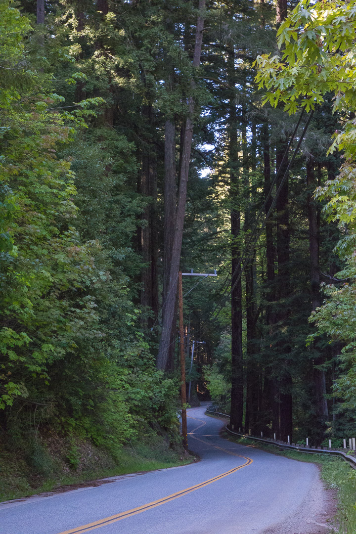 Eureka Canyon Road winds through the redwoods on its lower reach.