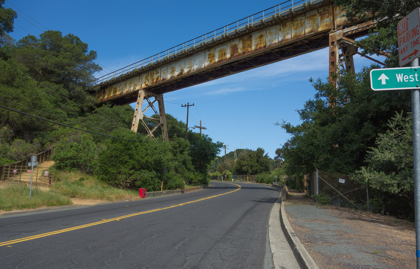 Passing underneath the BNSF trestle over Franklin Canyon Road