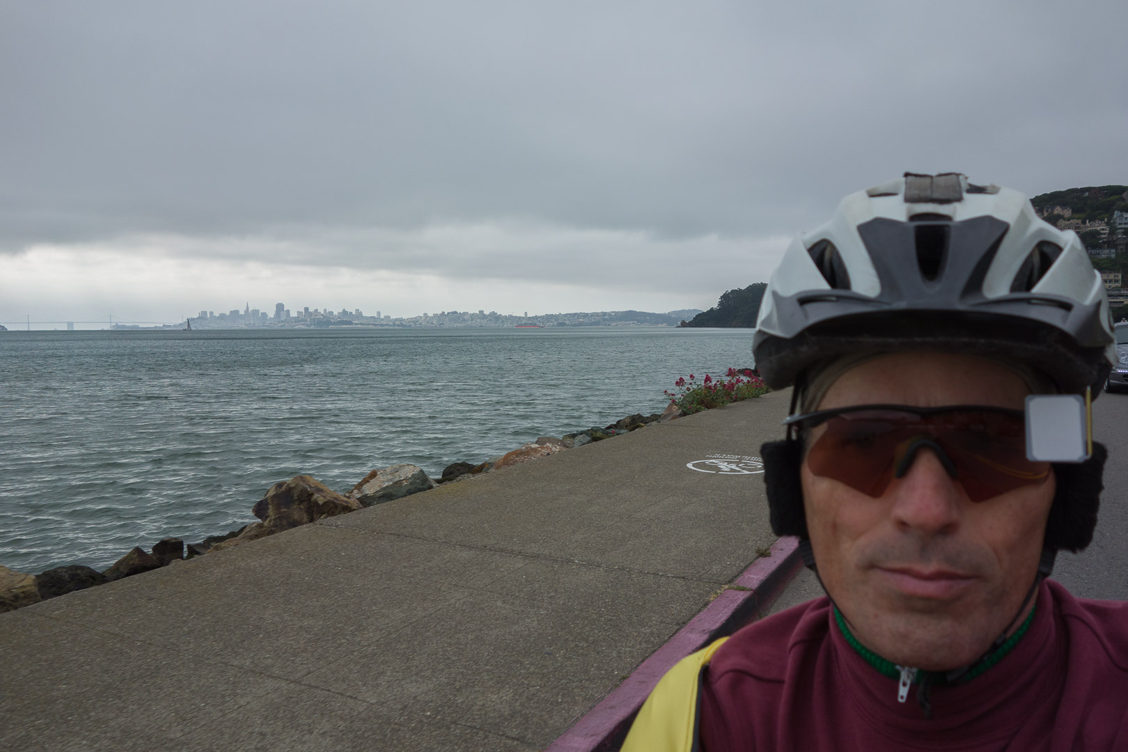 San Francisco from Sausalito under a heavy fog layer
