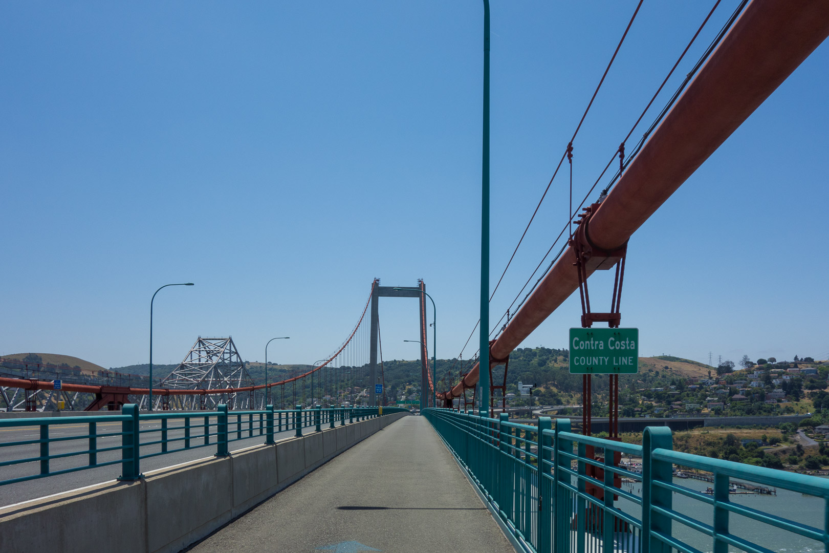 Crossing into Contra Costa County on the Zampa Bridge. I have the entire path to myself, unlike on the Golden Gate Bridge.