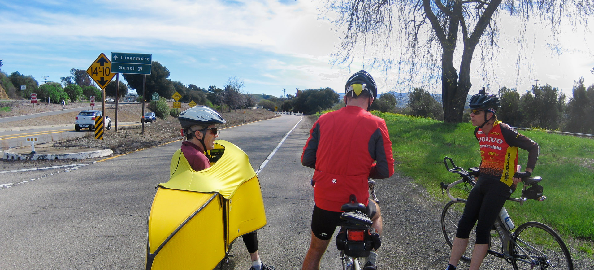 Bill, Tom, and Ken wait for Lisa at the Sunol exit.