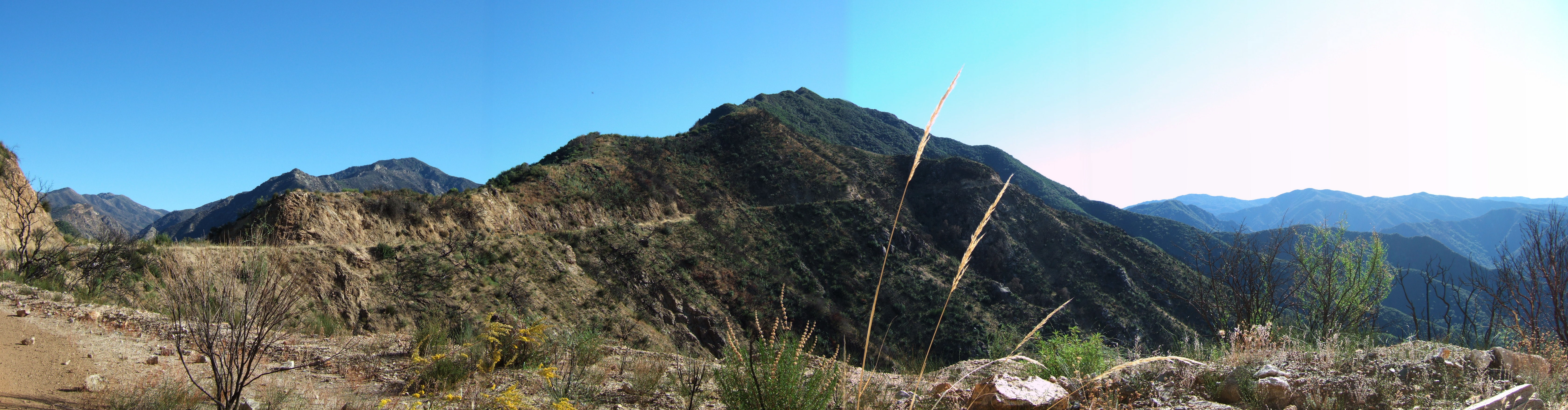 The peaks in the background are (l to r): Pinyon Peak (5264ft), Bear Mountain (4771ft), and Junipero Serra Peak (5862ft).