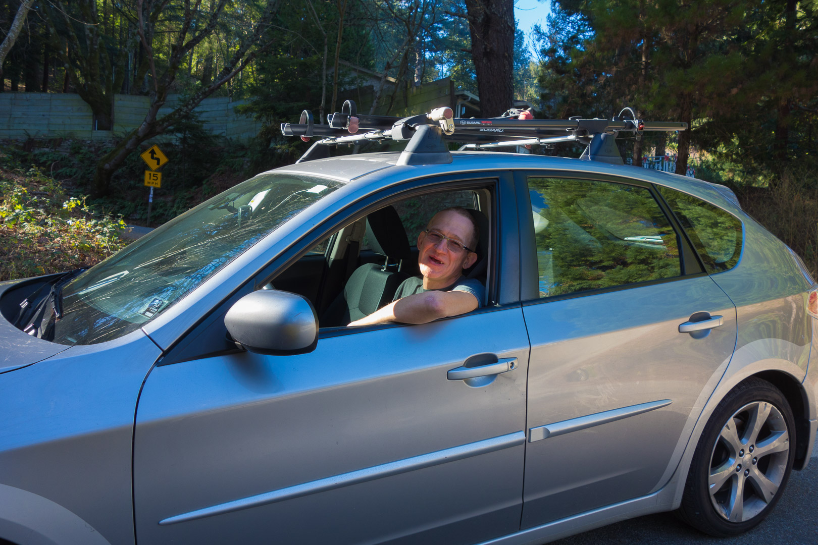 Alexander Komlik driving SAG for Nina, waits at Old Santa Cruz Highway and Mountain Charlie Road.