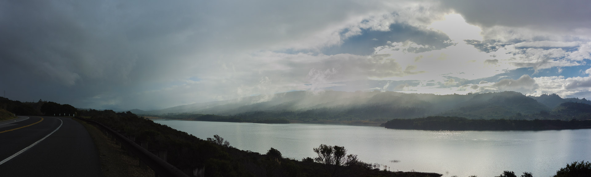 The parting of the clouds over Crystal Springs Reservoir