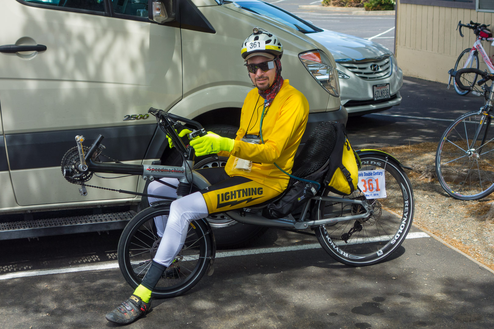 Zach Kaplan at the Middletown Rest Stop prepares to continue on his Speedmachine.