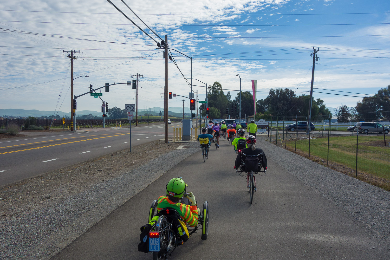 A minor bicycle traffic jam occurs at the end of the South Livermore Ave. bike path.