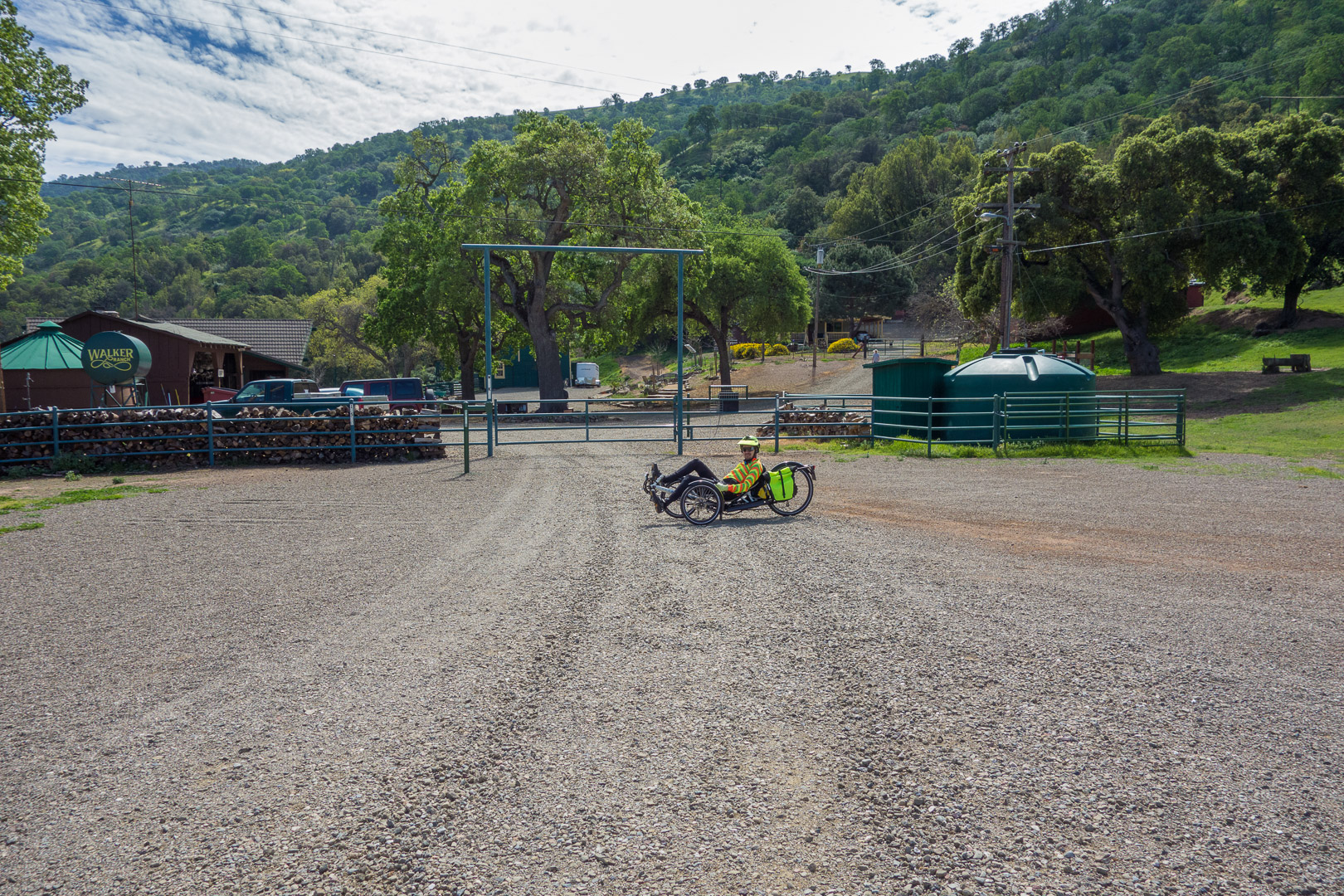Zach turns around in front of the Walker Ranch gate.
