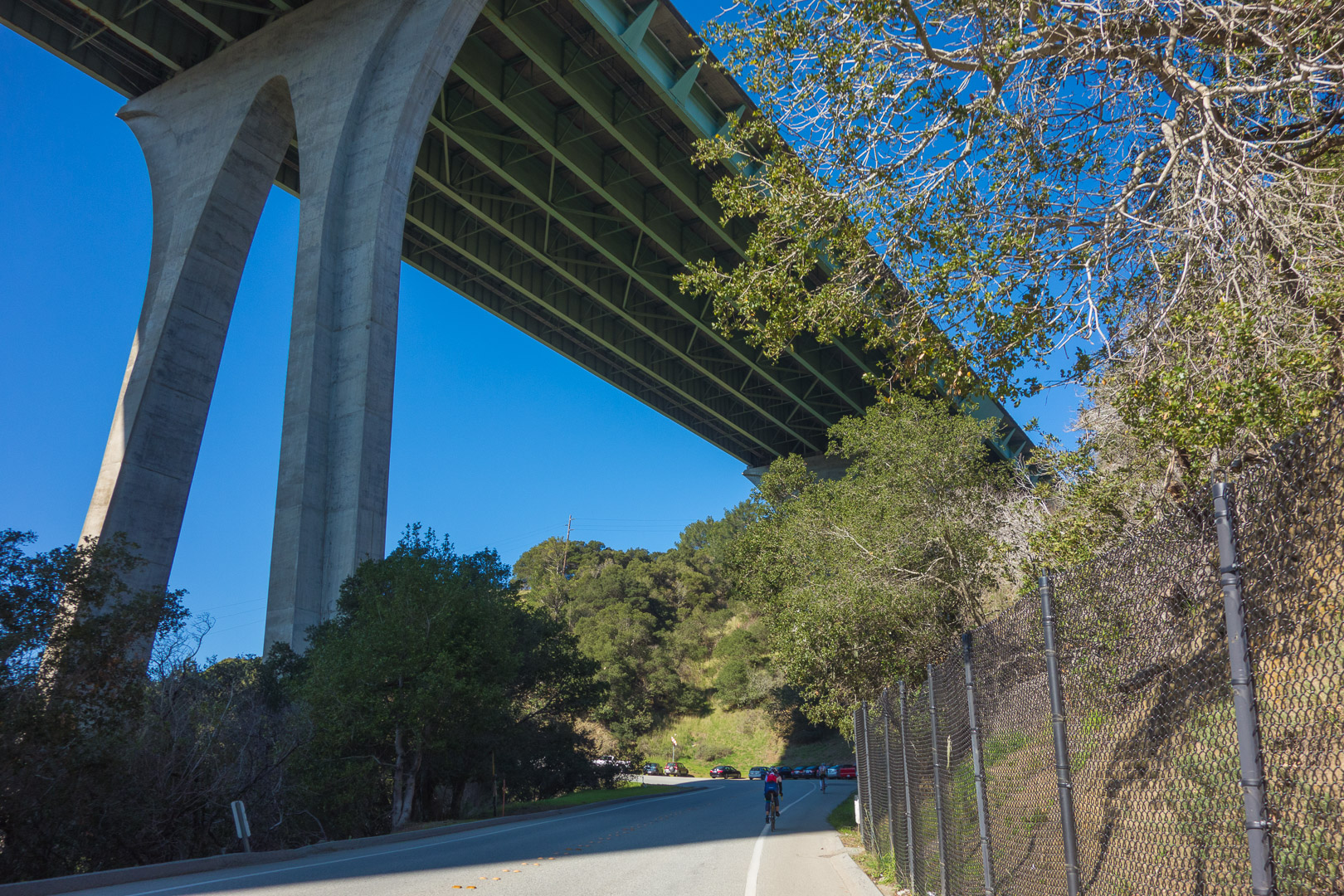 Passing below the Doran Bridge on Crystal Springs Road.