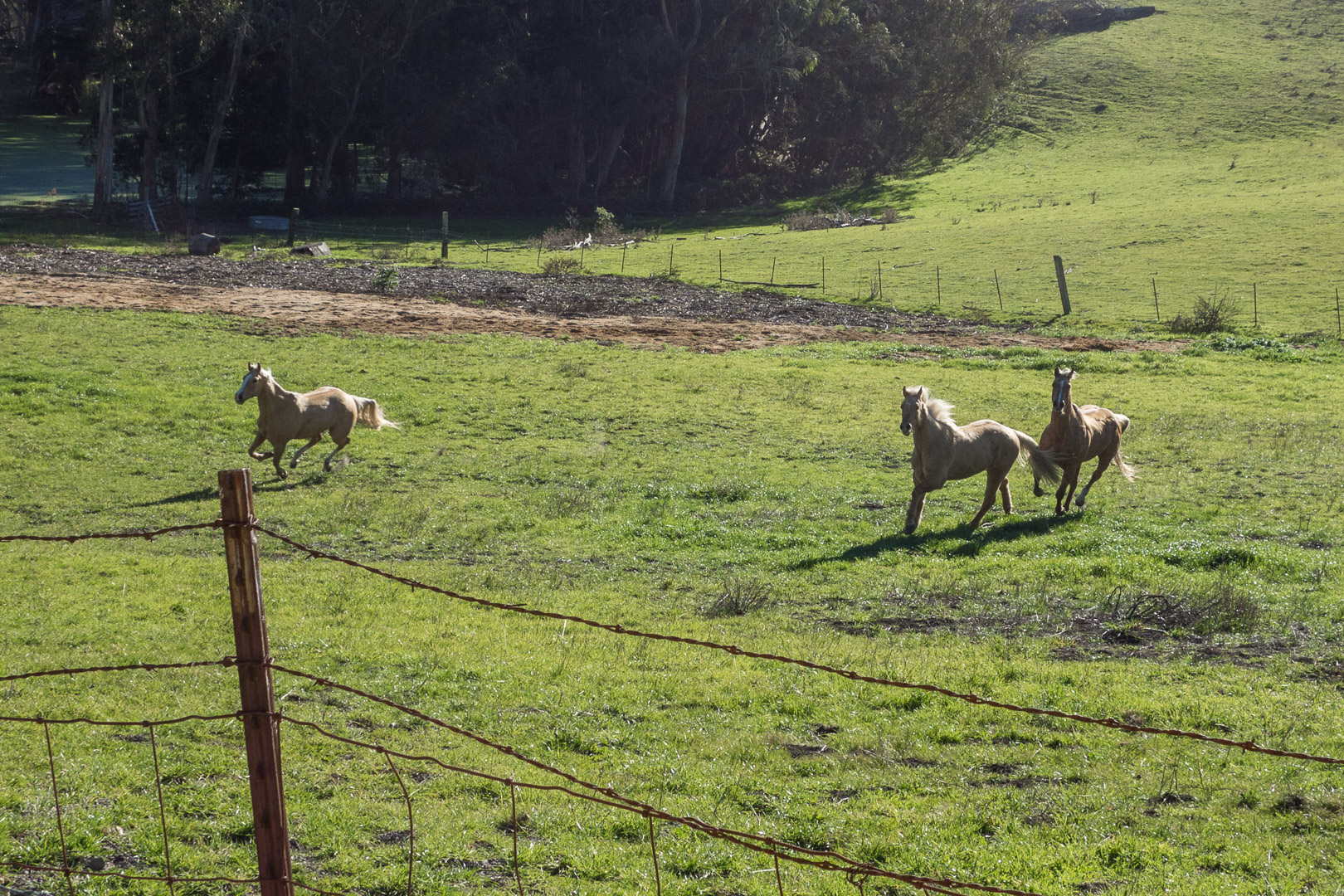 Horses chase each other. These are the happiest horses I can recall seeing. Most captive horses stand dejectedly in their field when left on their own.