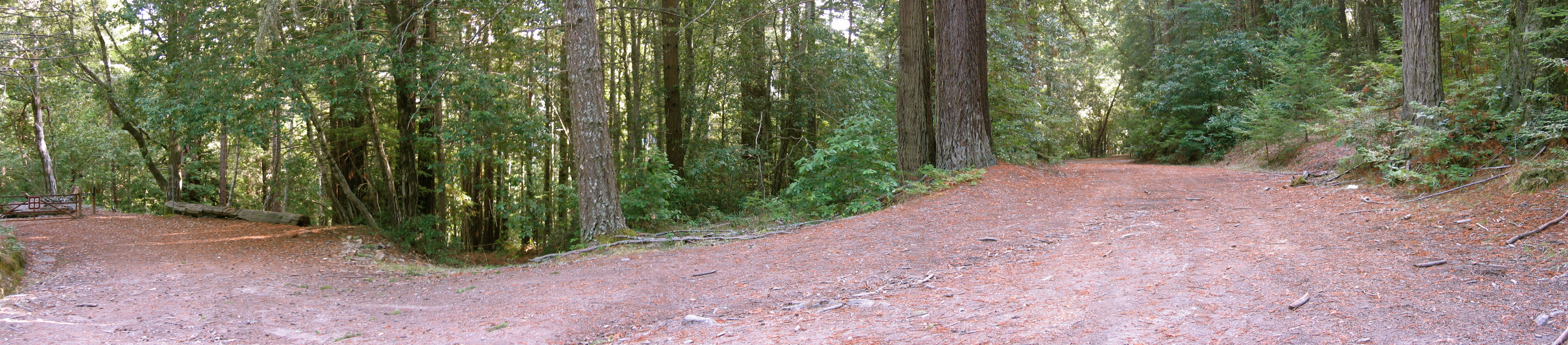 To the left is the continuation of Gazos Creek Rd. heading toward the Big Basin State Park HQ. To the right is Whitehouse Canyon Rd. that leads out along Chalk Ridge.