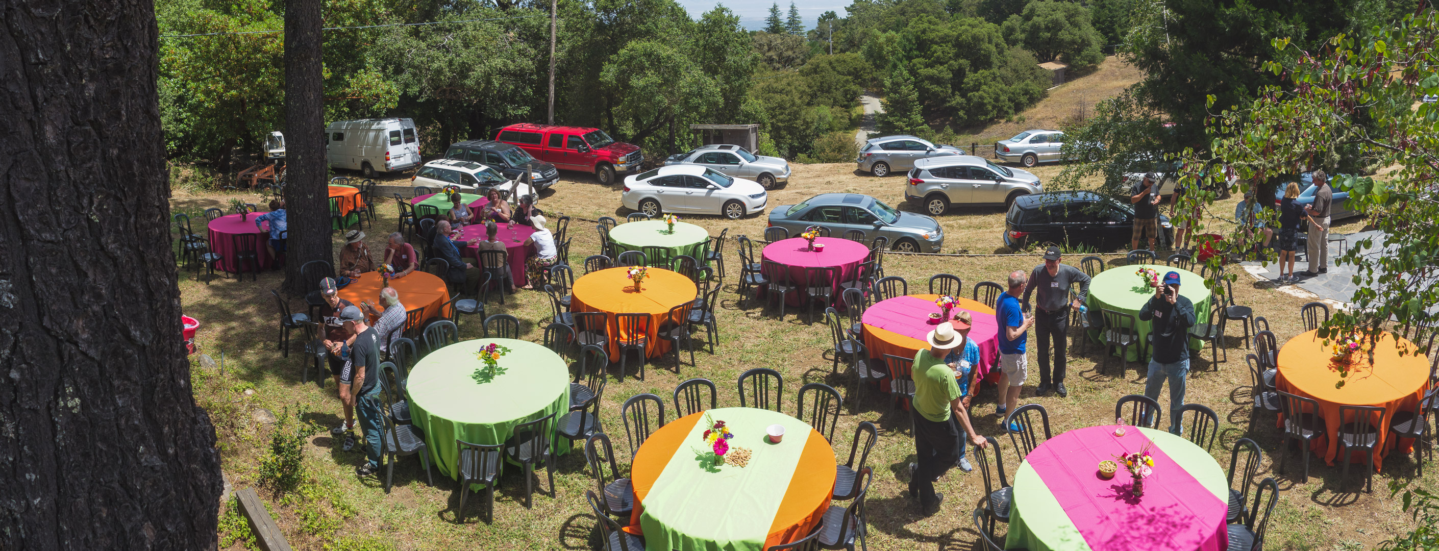 Colorful tables prepared for lunch