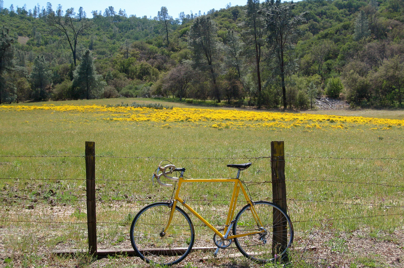 Jobst's Yellow Bike somewhere along Old Hernandez Road in San Benito County, California Photo courtesy of Jobst Brandt.