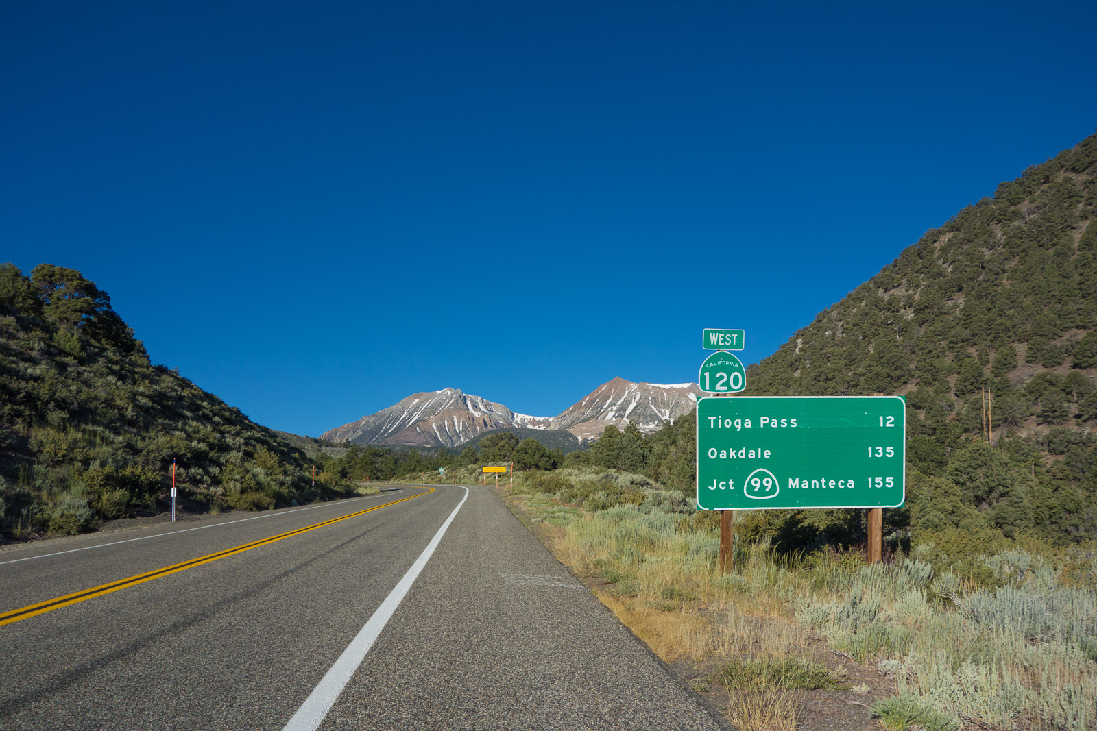 New asphalt on Tioga Road The distant coast range can be seen.