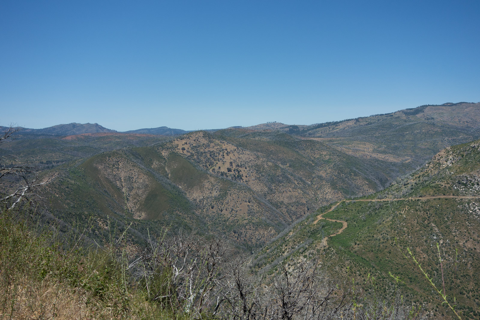 Forest denuded by the Rim Fire My route passes through the center of the burn area.