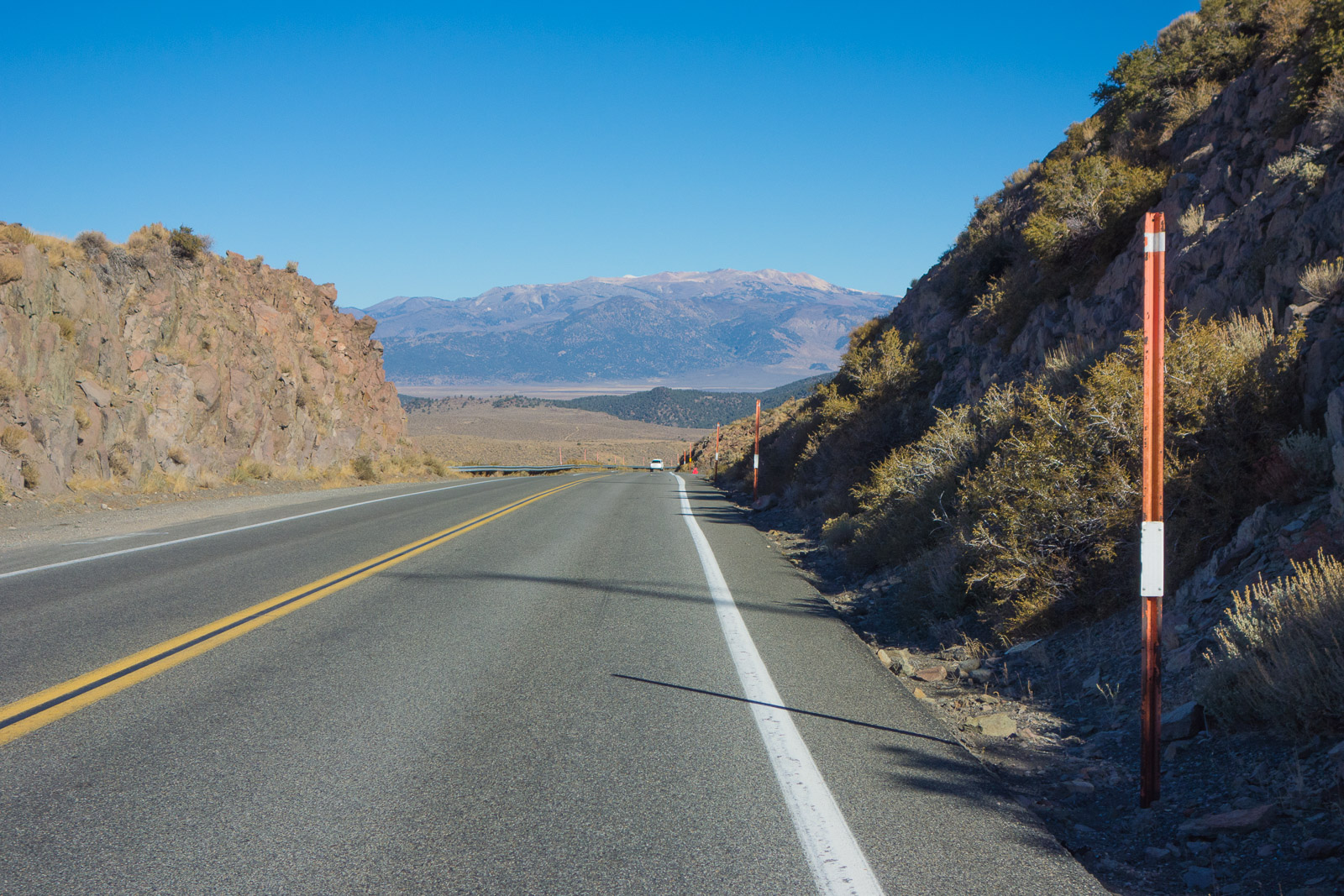 Narrow section of US395 on the descent Mt. Patterson is in the background.