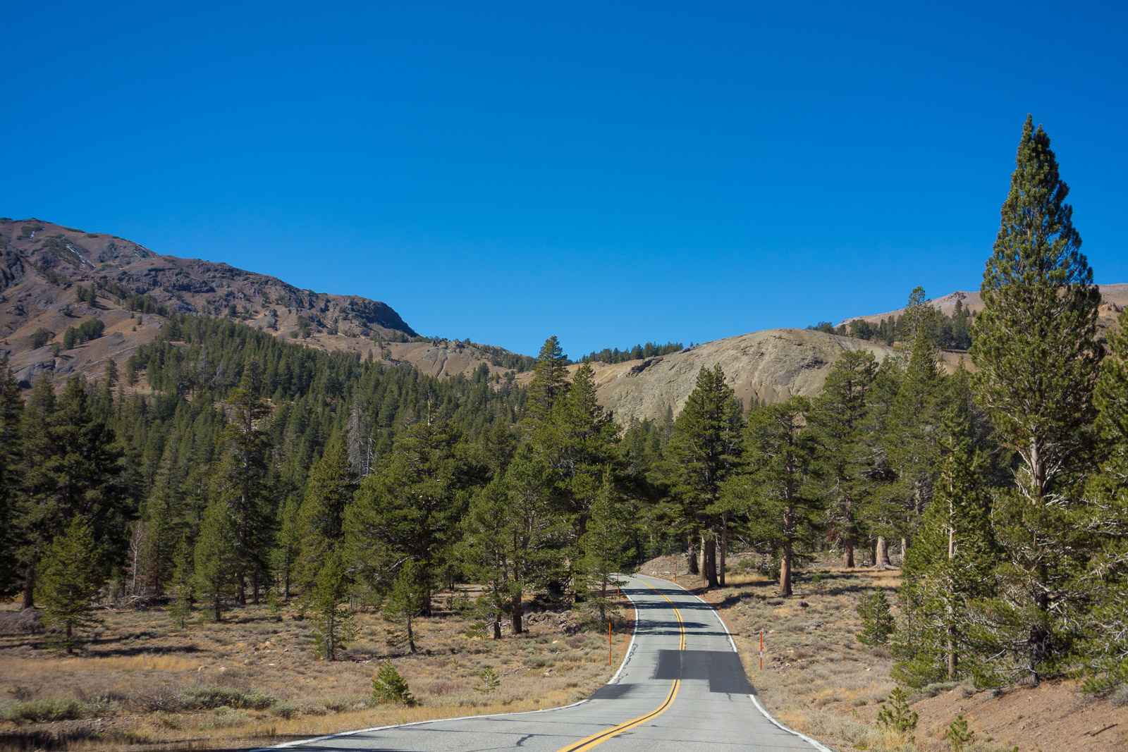 Heading north on US395 near Mono Lake The road is about to climb to Conway Summit.