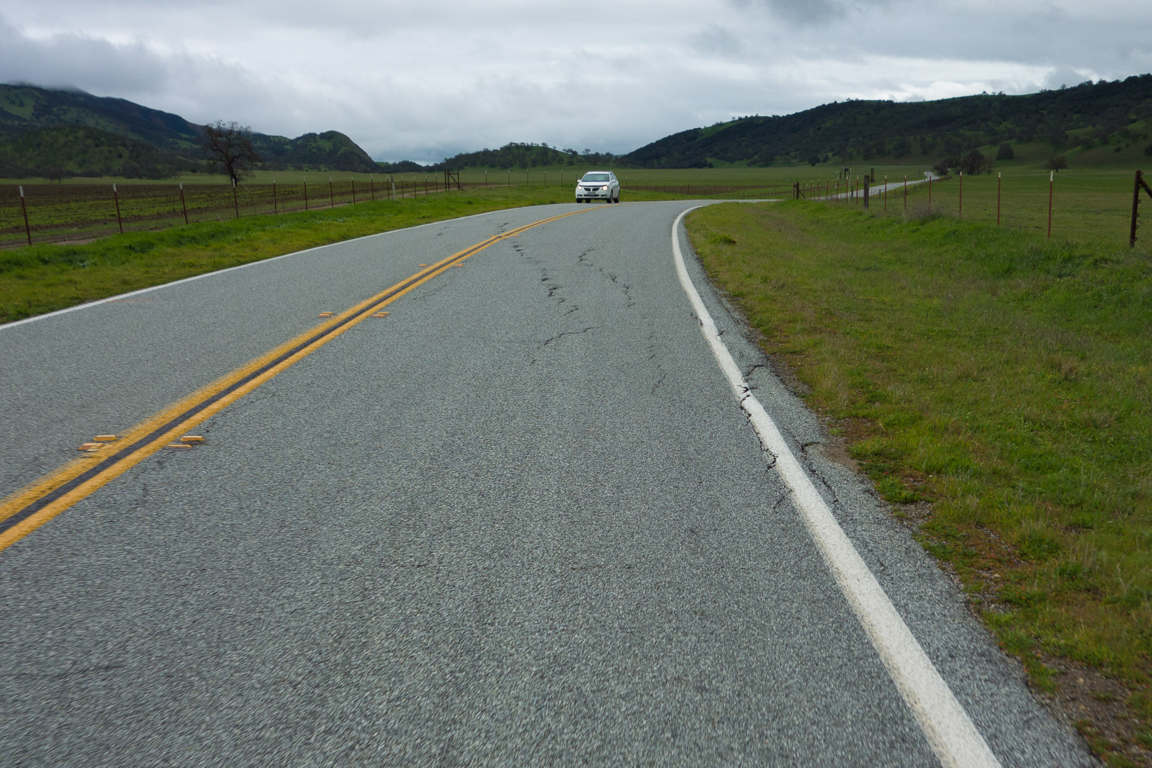 The San Andreas Fault crosses the road here.