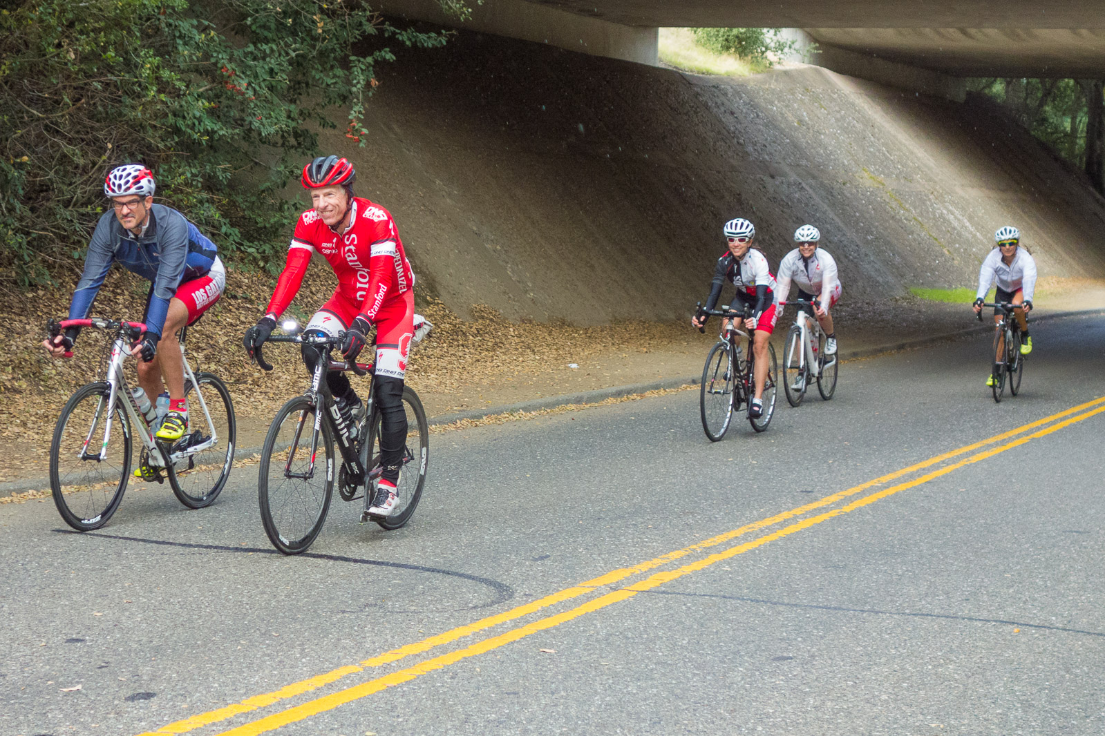 Hal Rooney leads the LGBRC group down Elena Road near Purissima Road.