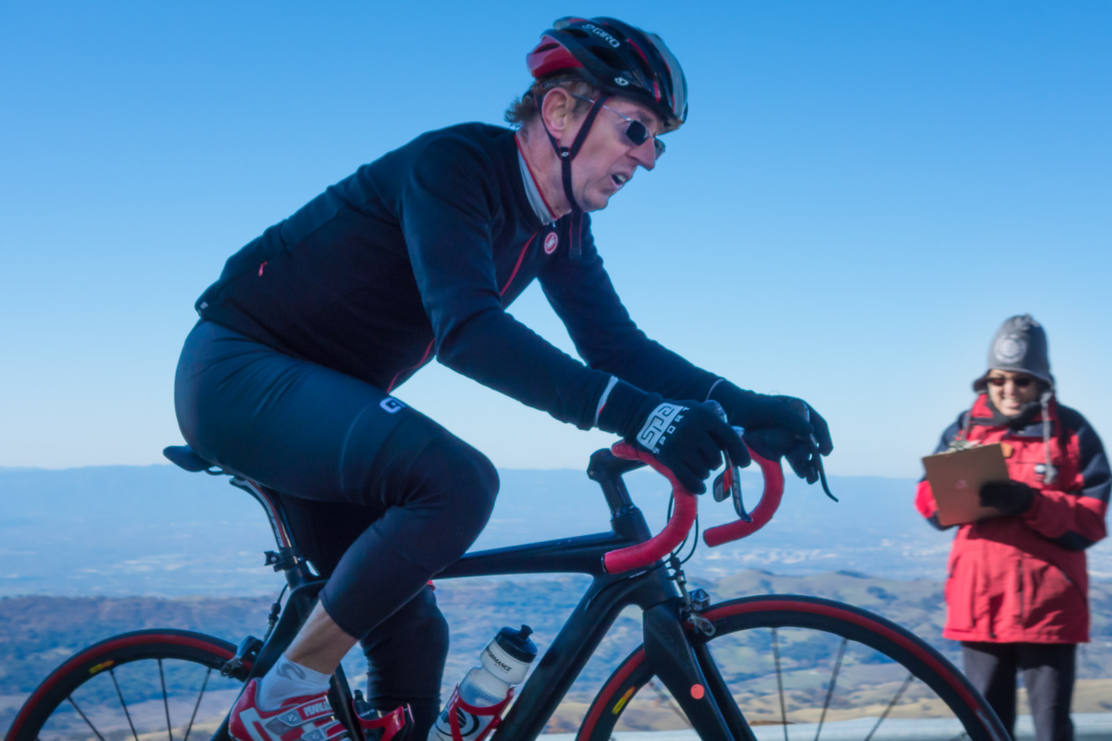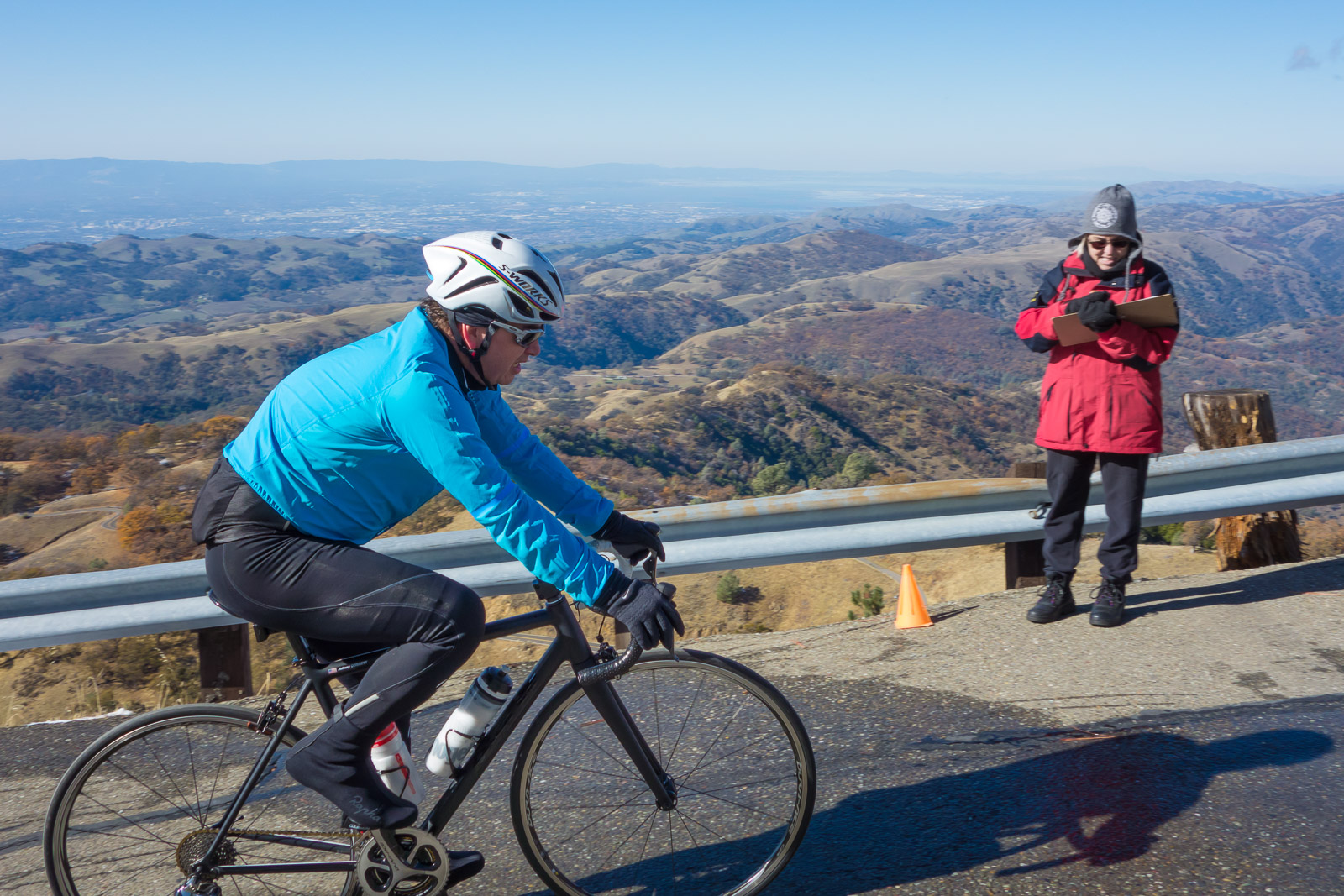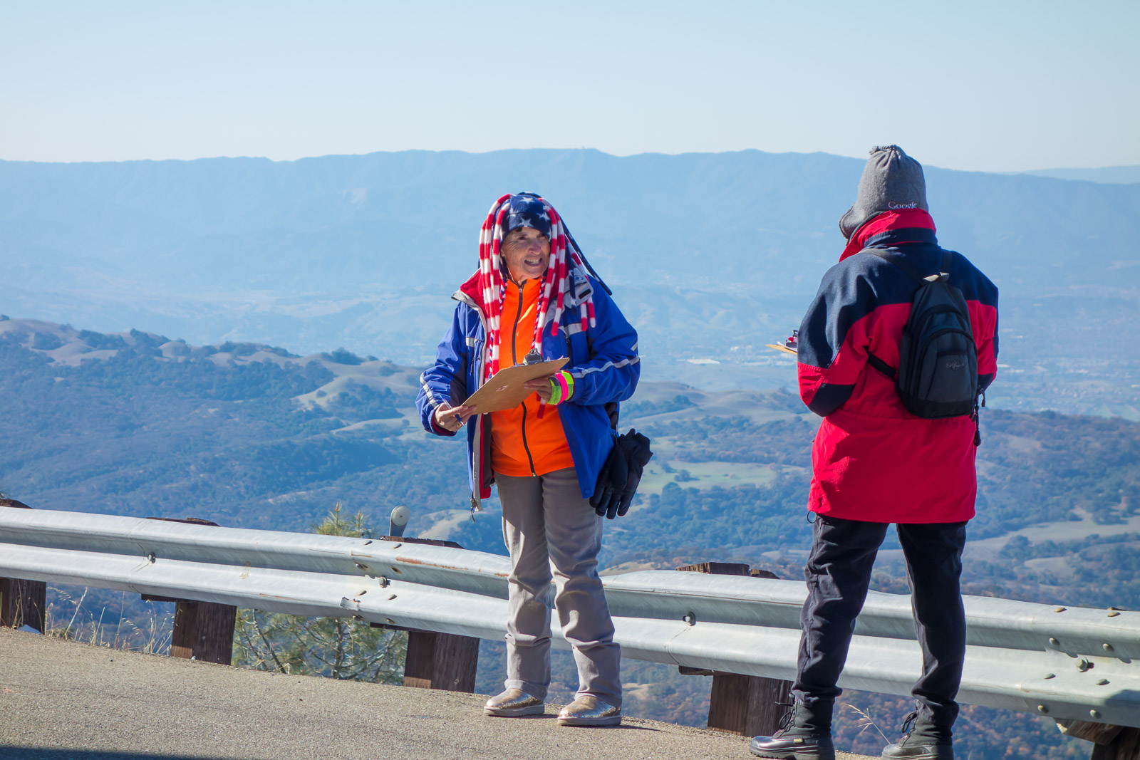 This is where I sat when taking most of the finish line photos. I'm wearing three layers on my head, five layers above the waist, and three layers below. I wasn't warm, but I didn't start getting chilled until about an hour and twenty minutes after I started taking photos.