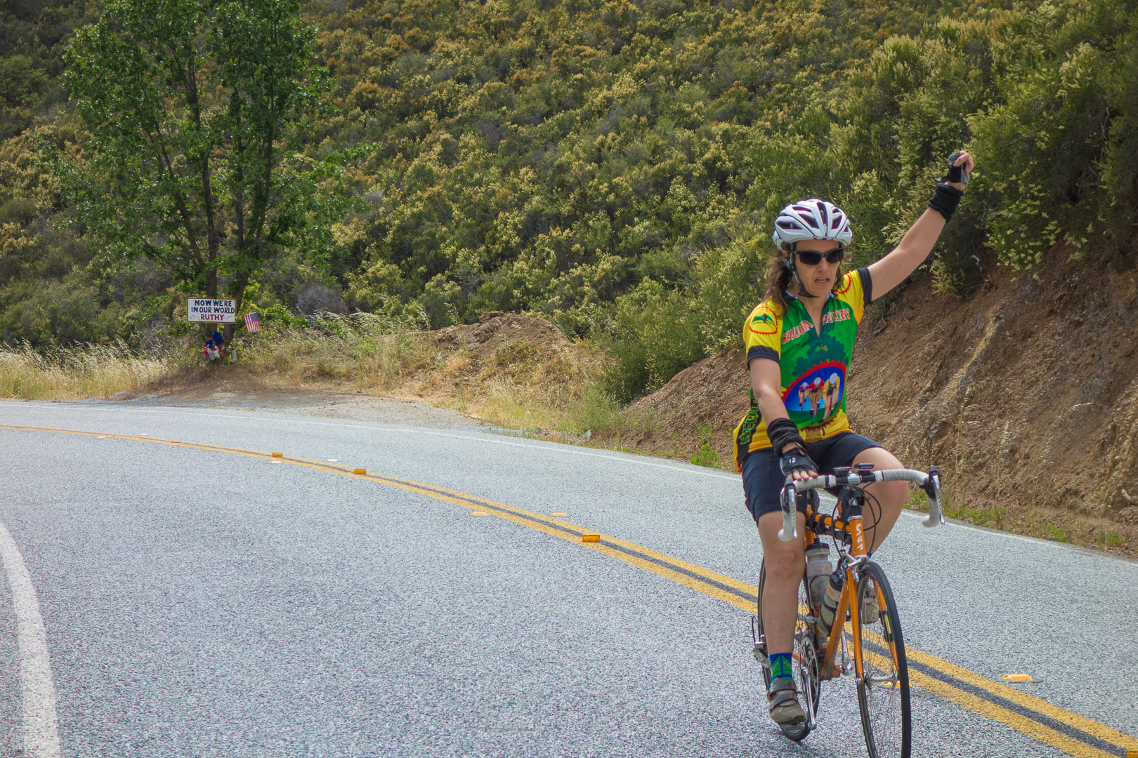 Stella gives a victory salute at the top of Eylar Summit (2900ft).