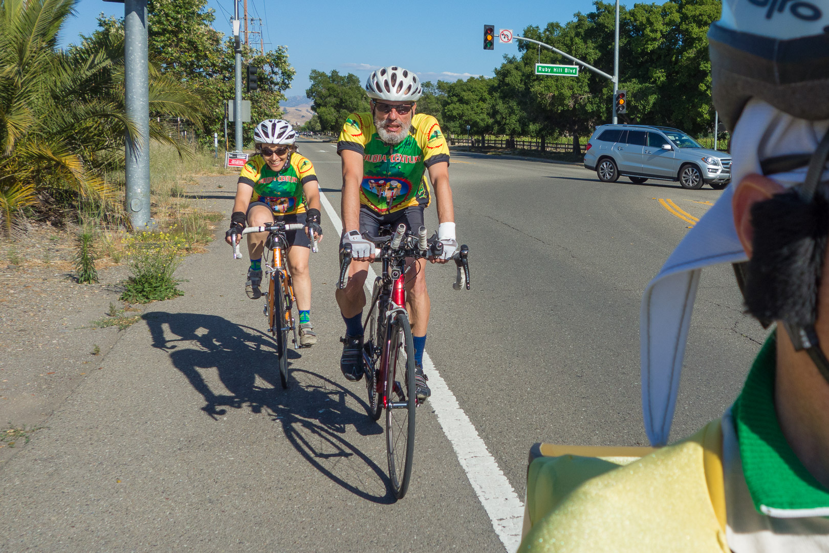 Stella and Frank on Vineyard Ave. Stella appears to be enjoying herself, while Frank looks like he's suffering a bit.