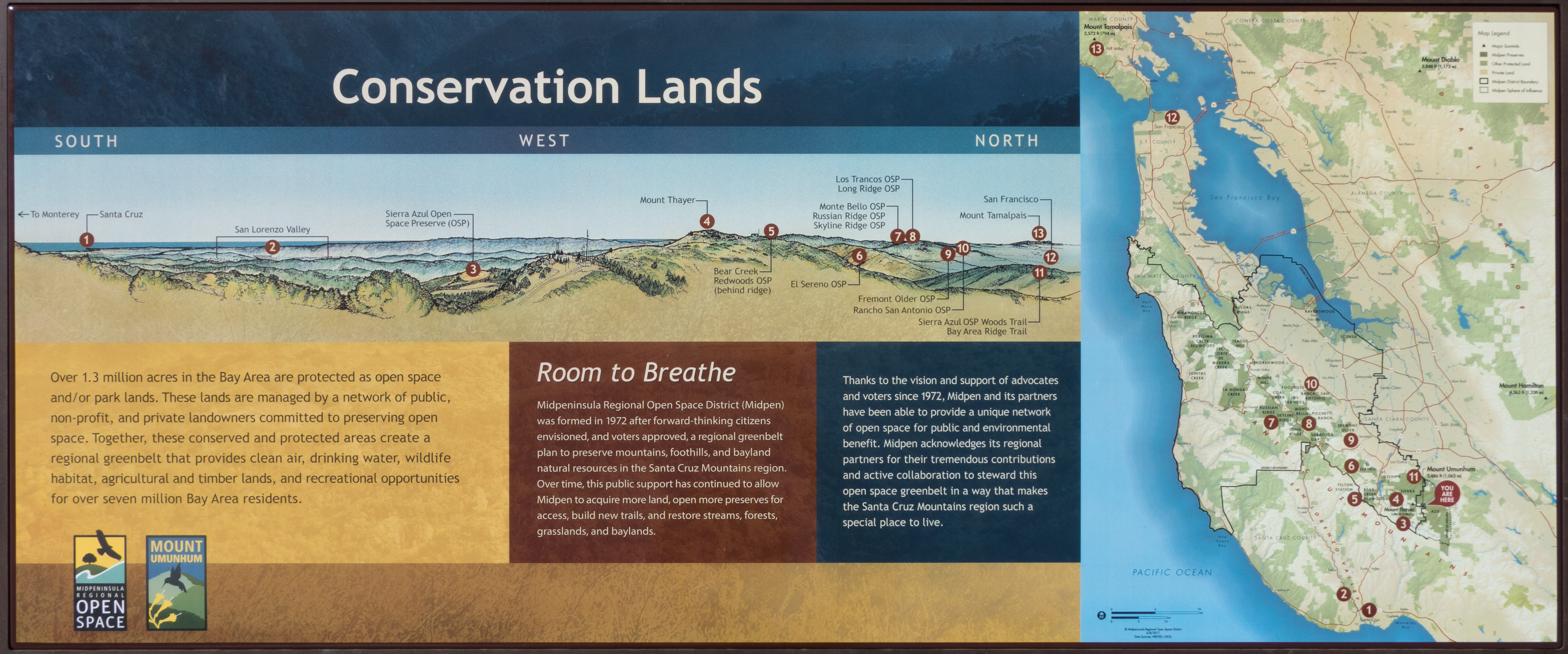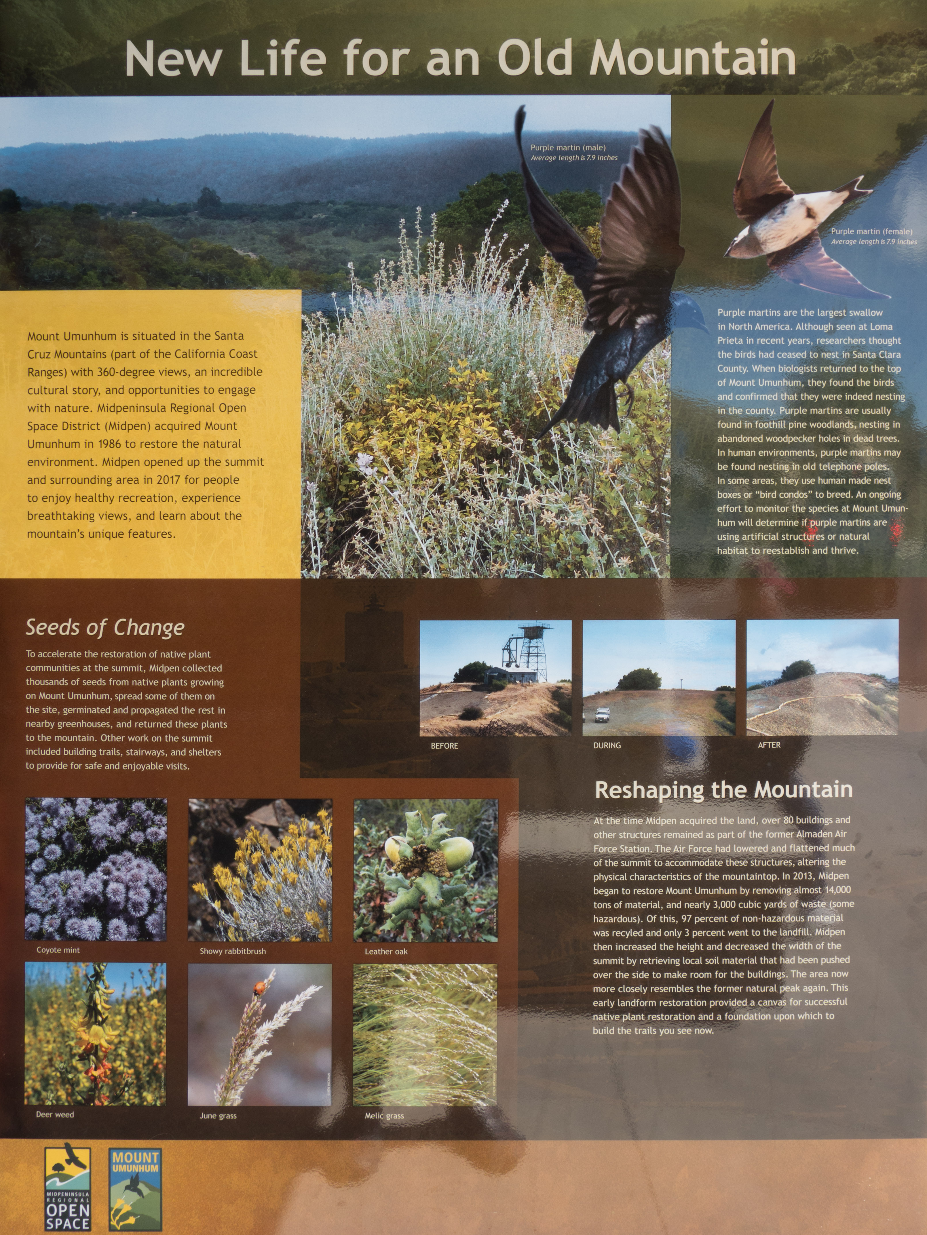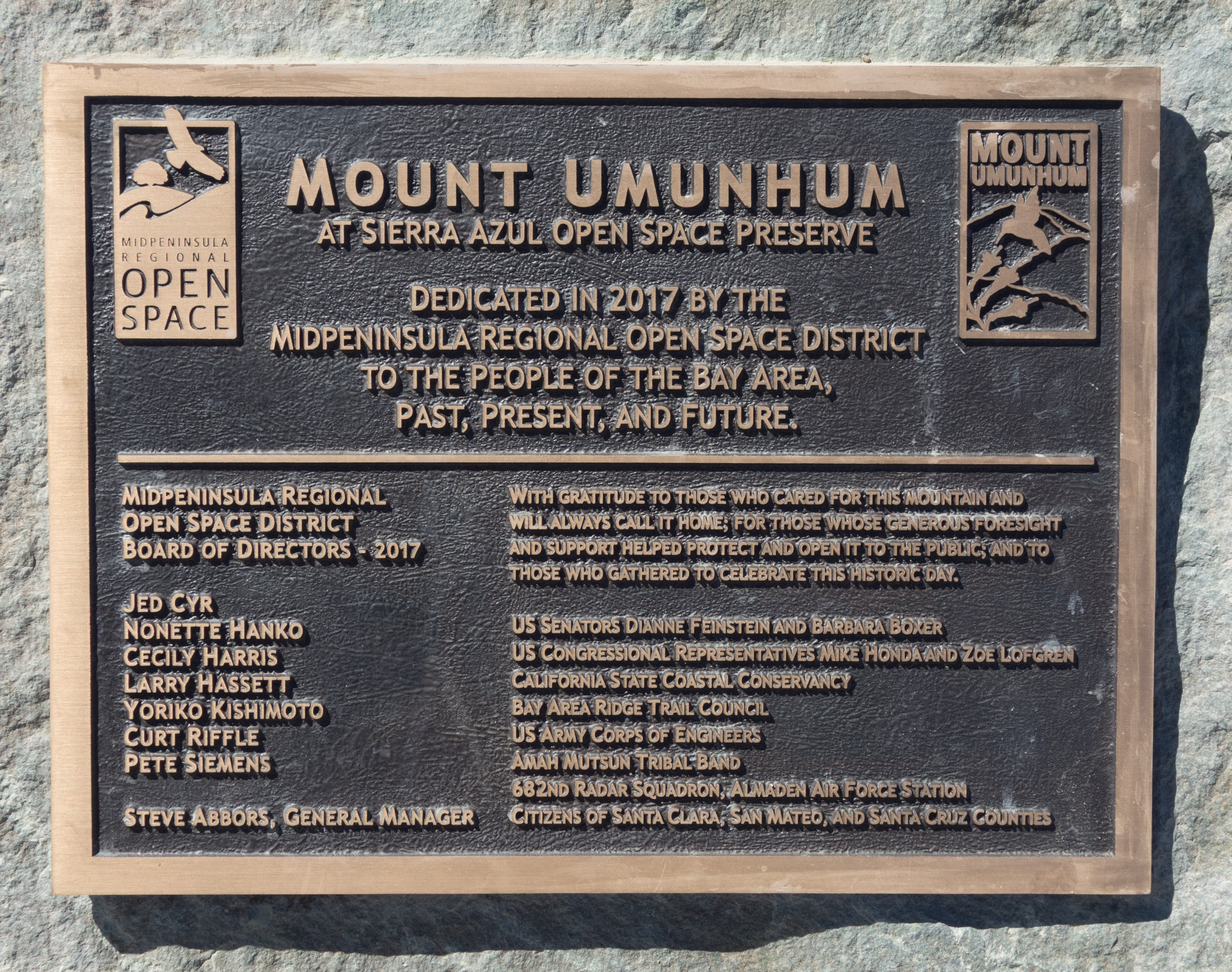Mt. Thayer (left) The road to the Summit of Mt. Umunhum bears right.