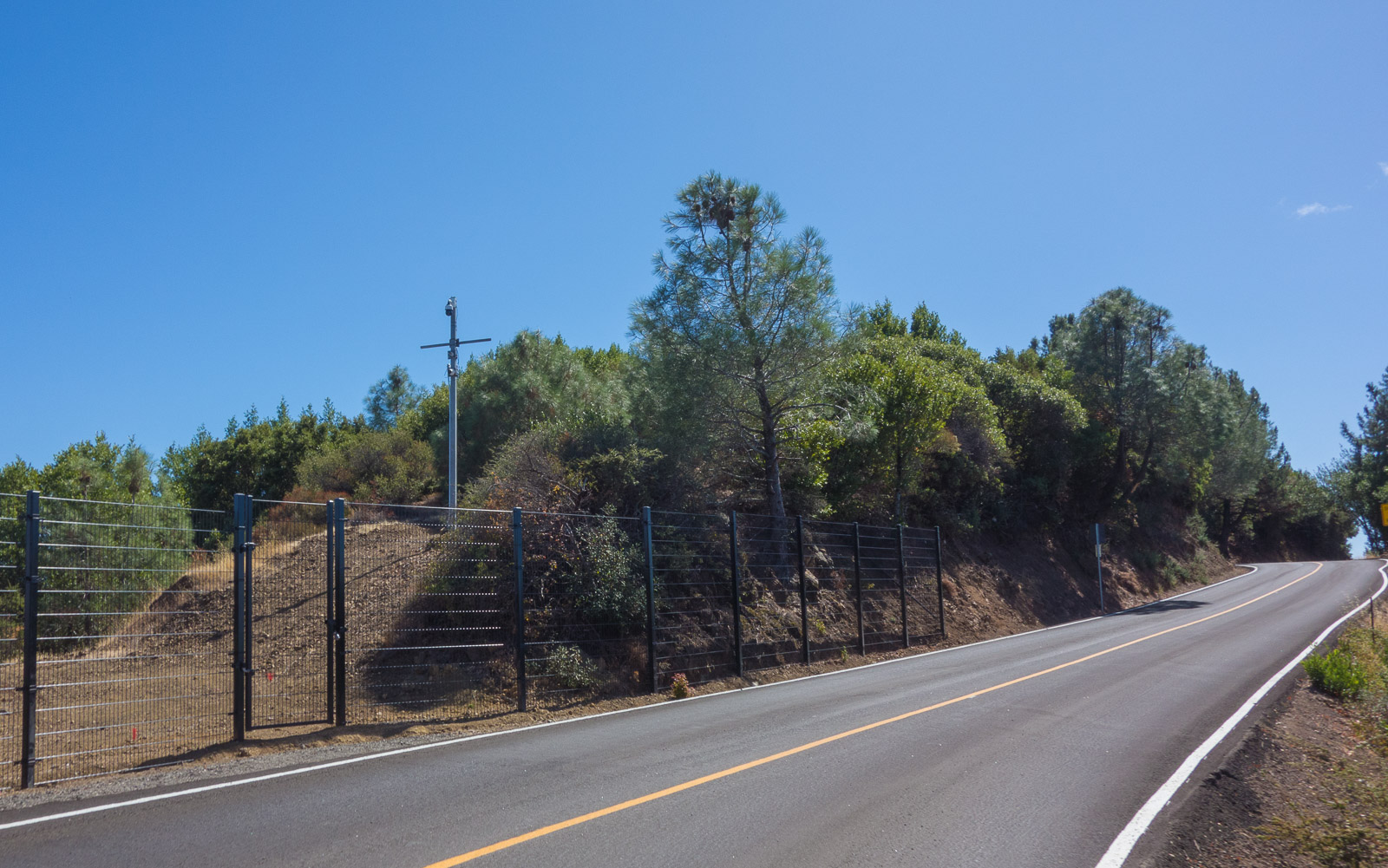 Site of the old "yellow gate" The black fencing was erected at taxpayer expense at McQueen's request to prevent trespassing onto his property.