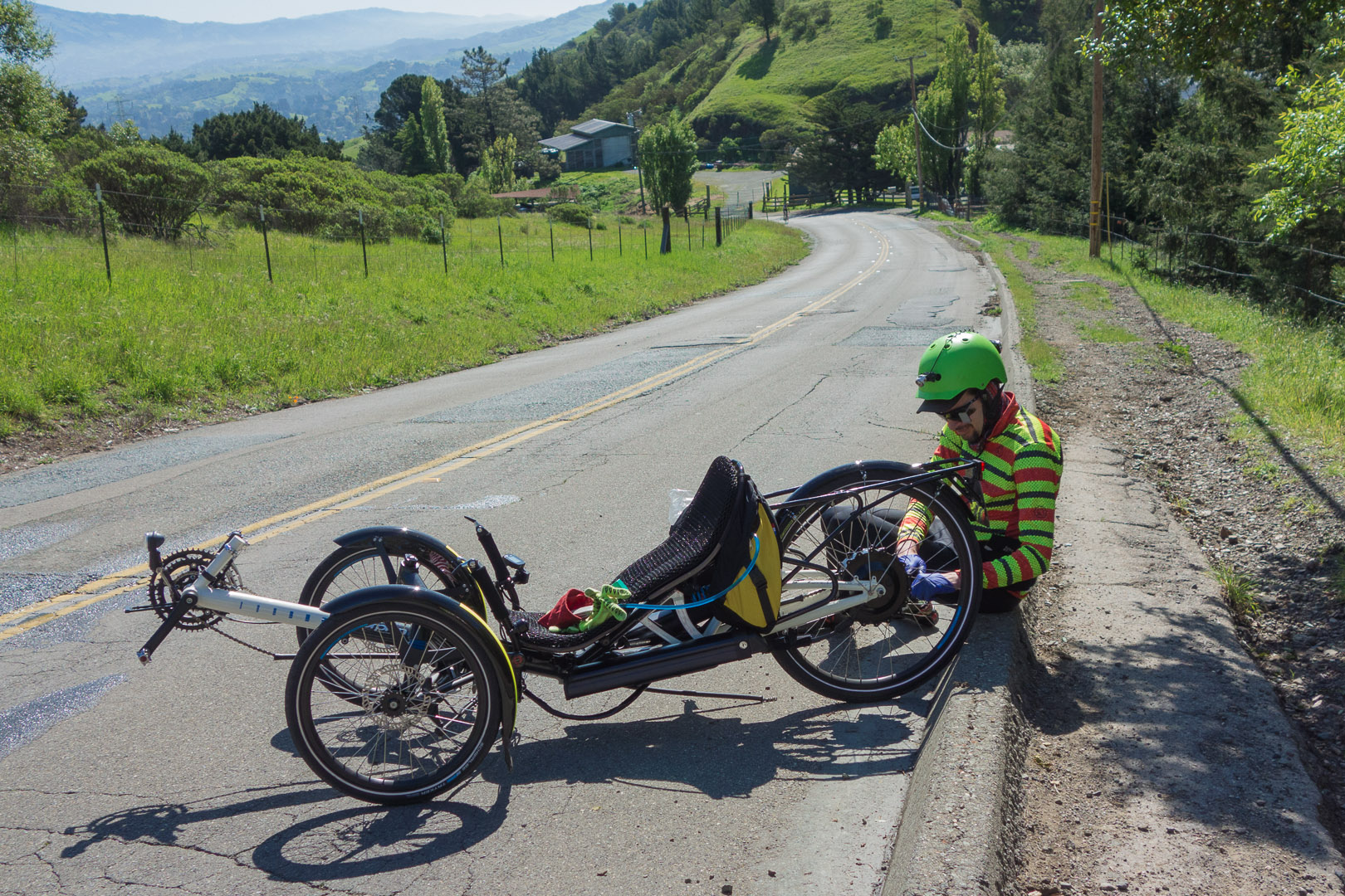 Zach struggles with a chain jammed between the cassette and the hub motor.