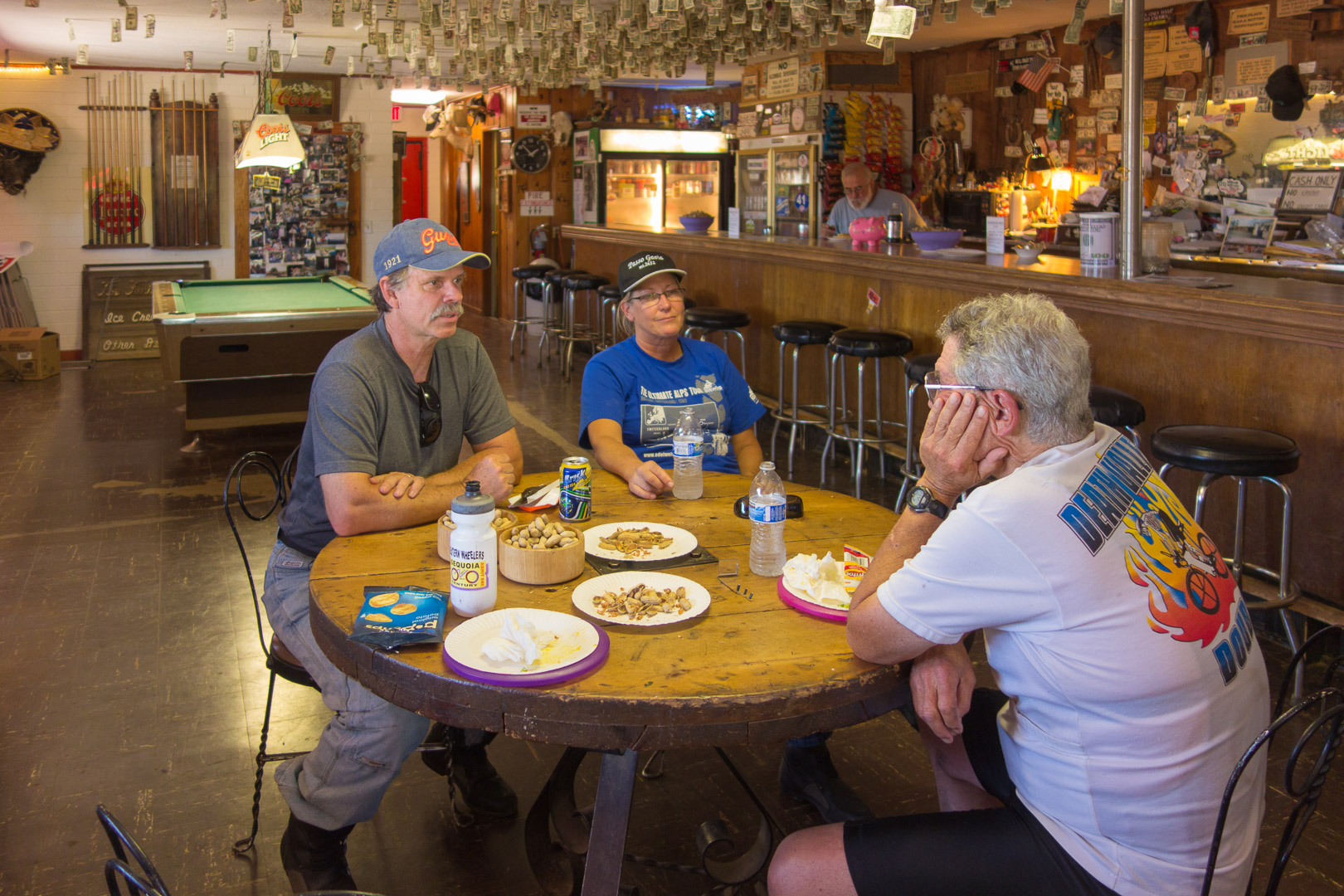 Gordon, Sue, and Ron chat after lunch.