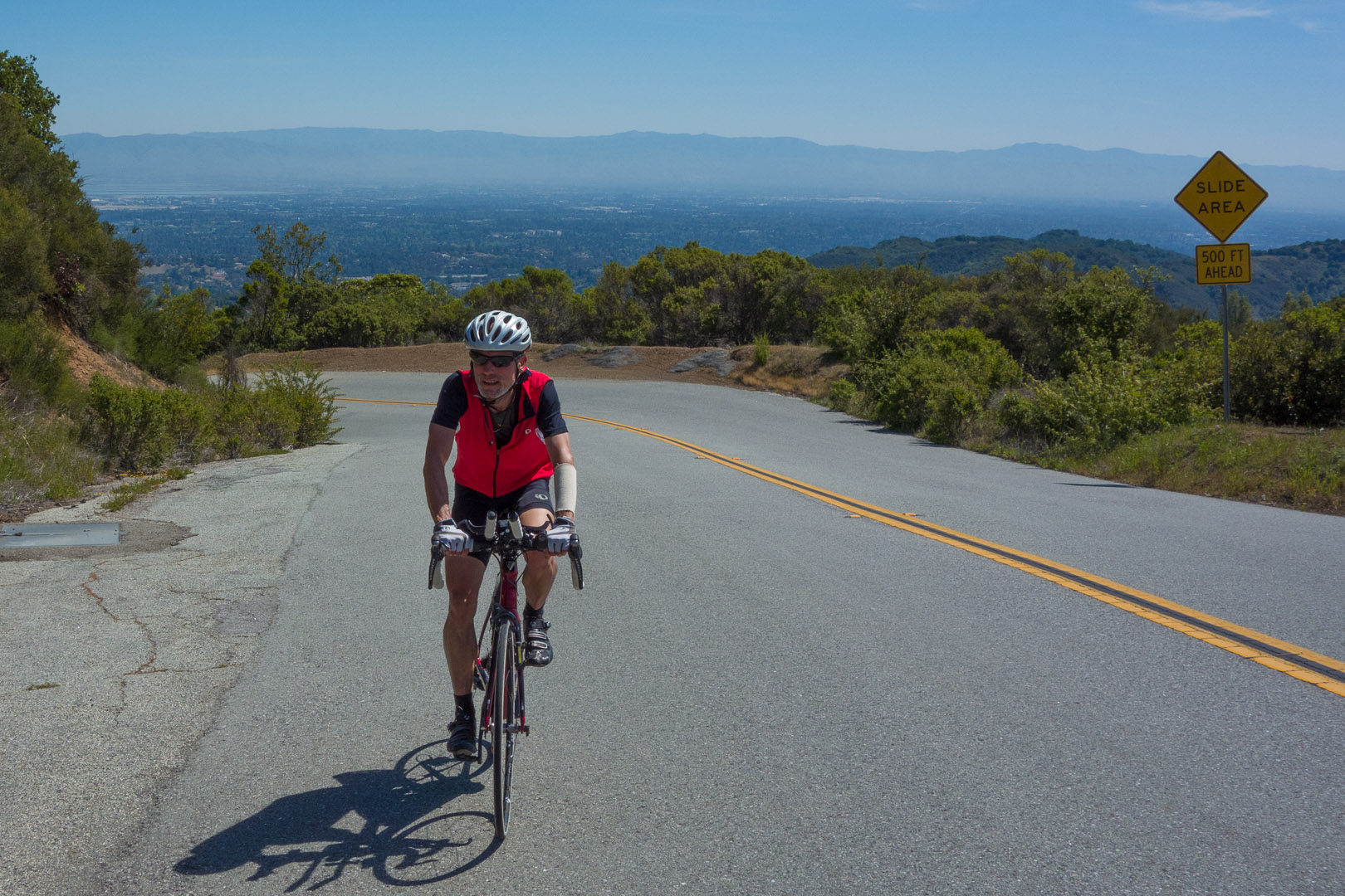 Frank climbs the steep part of Page Mill Road.