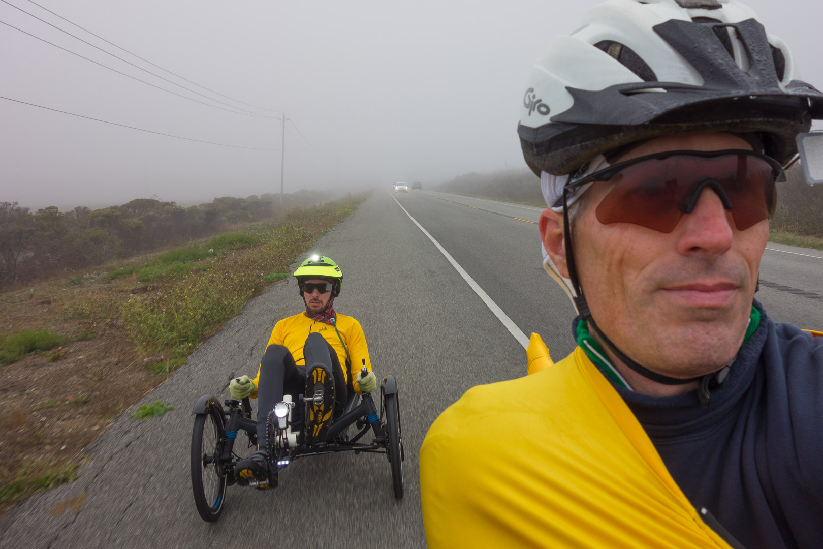Zach and Bill head south on CA1 near Half Moon Bay.