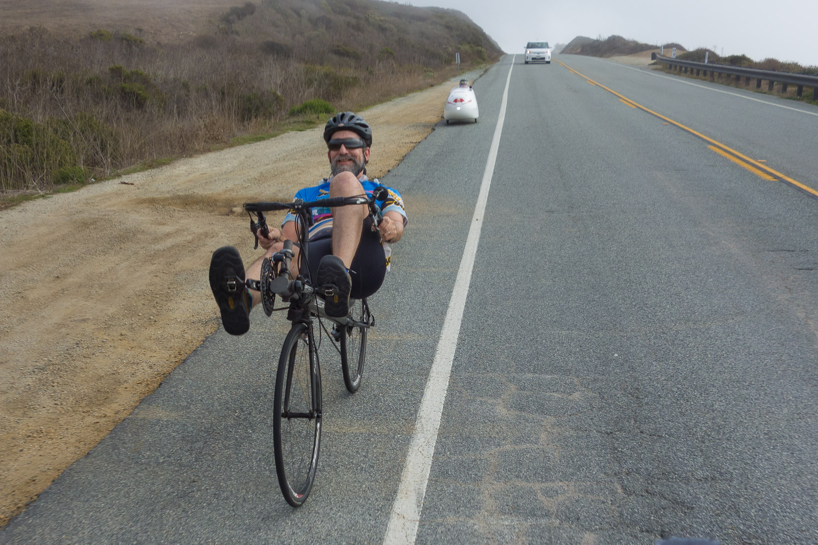 Dave ? on his Carbent Raven and Greg Thomas in his carbon fiber Quest head north on CA1 near Swanton.