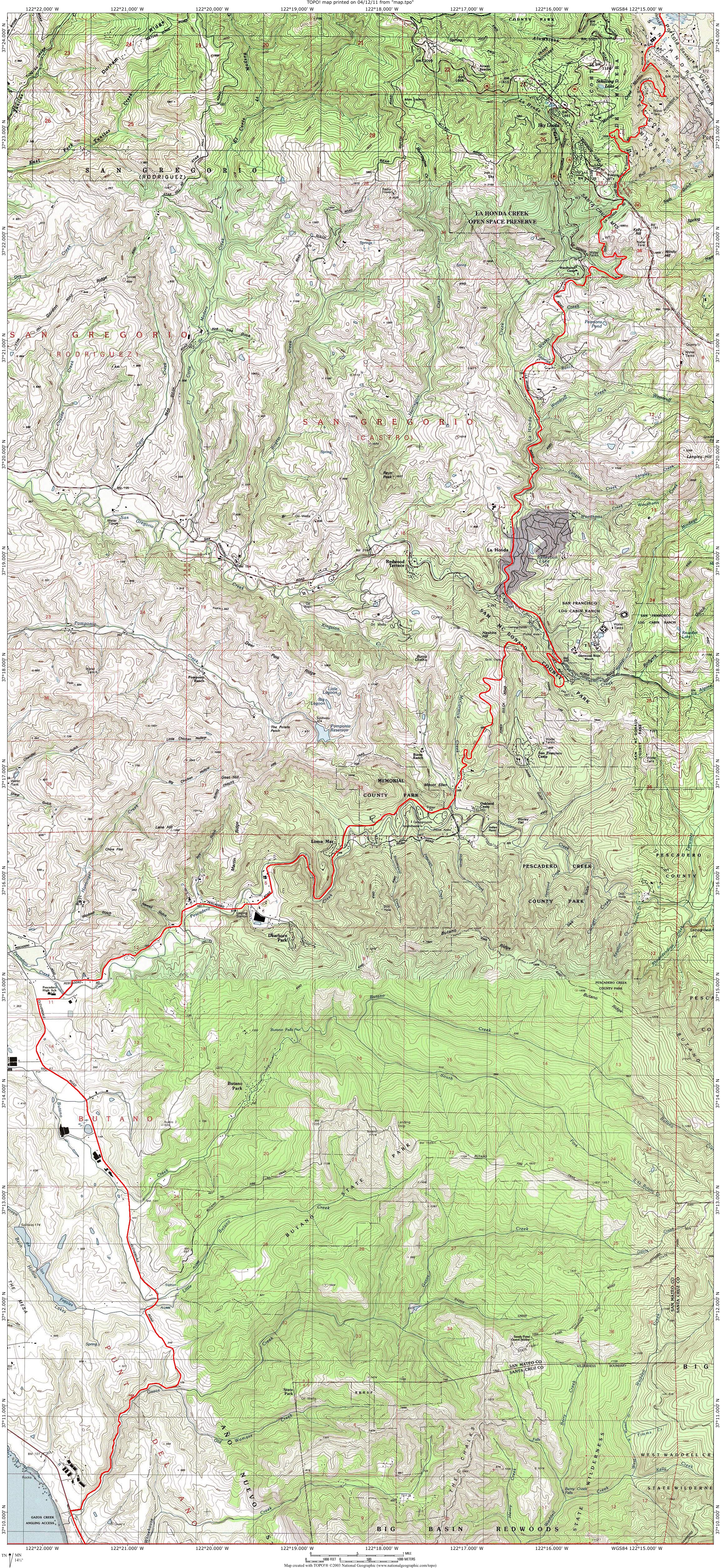 Old La Honda Rd. to Gazos Creek Rd. Detail Map