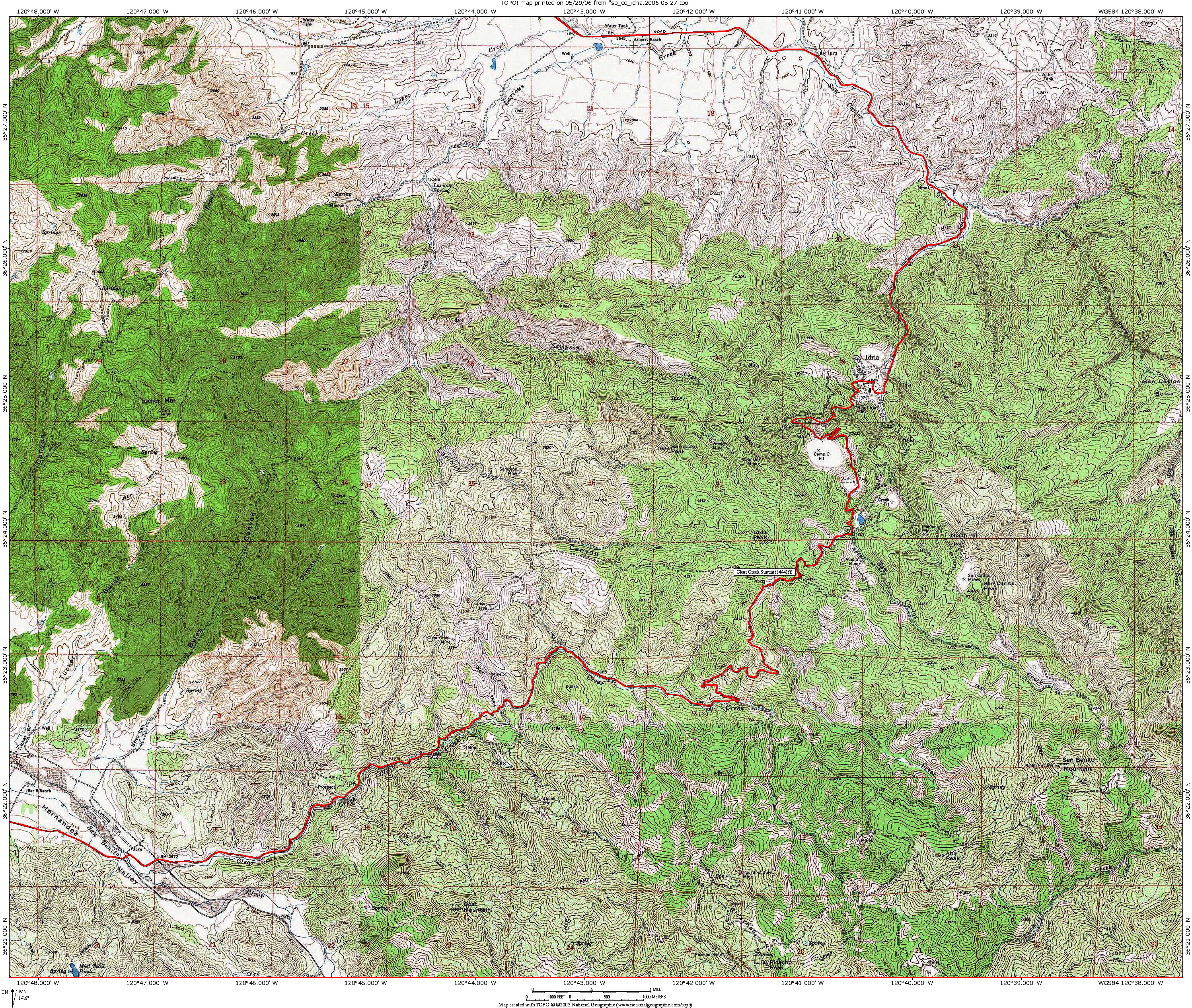 Clear Creek to Idria detail map.