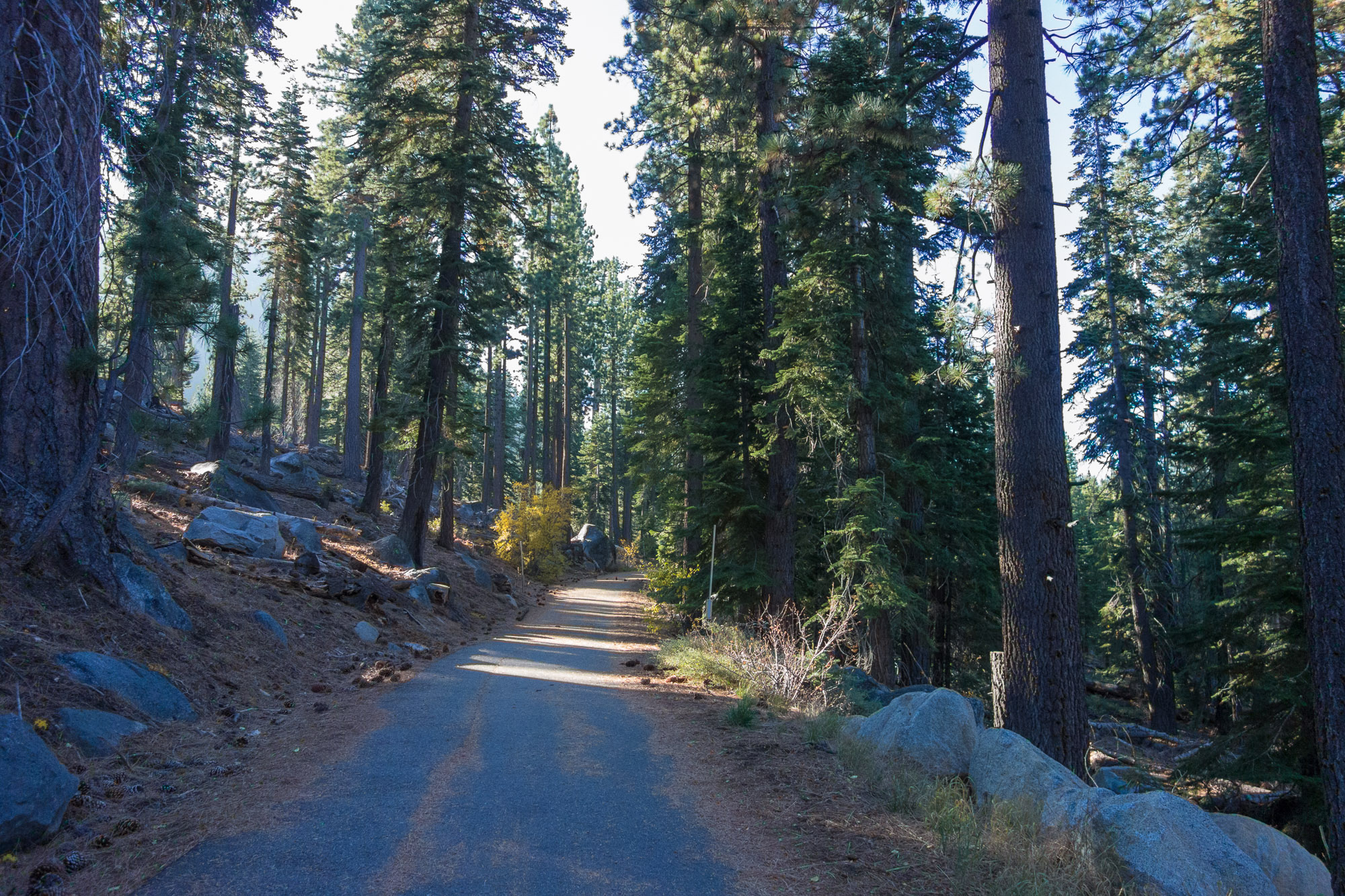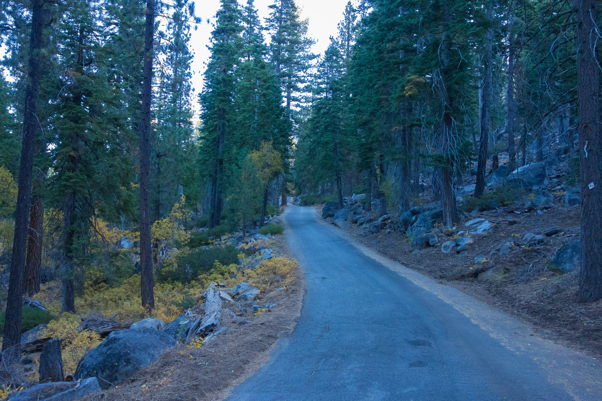 Back onto old asphalt on the upper reach of Upper Truckee Road
