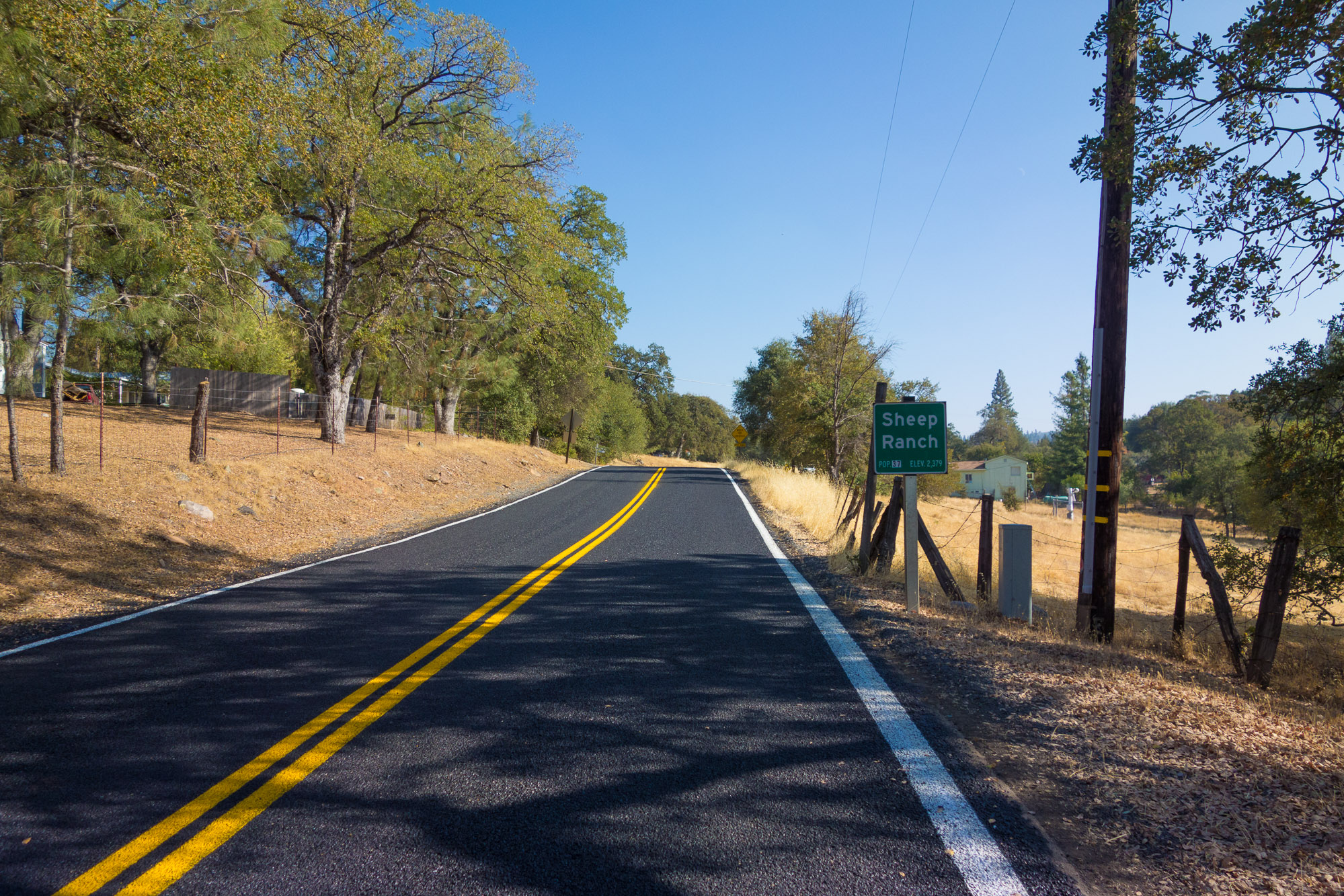 Crossing Middle Fork Mokelumne River, then turning left onto Railroad Flat Road