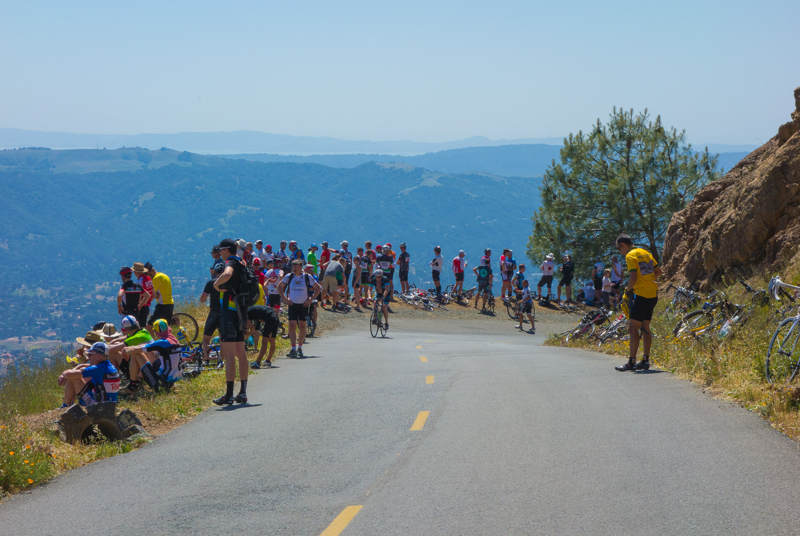 Fans watch for the arrival of the race.