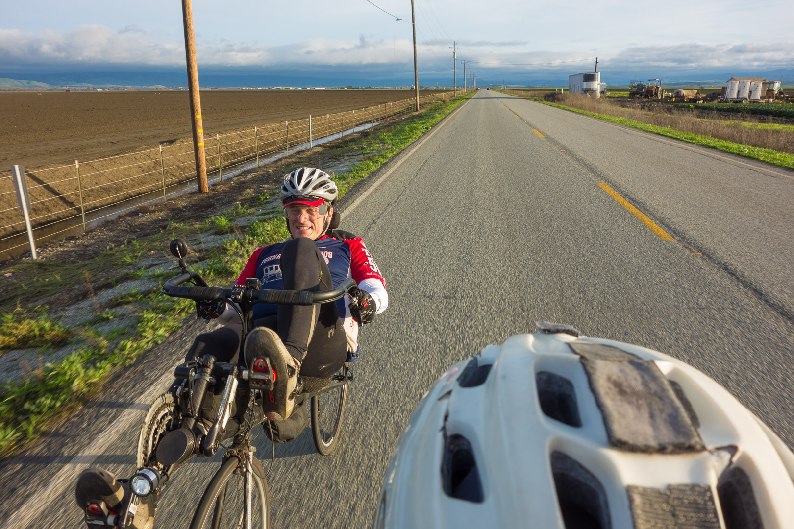 Tim finds the sweet spot in my draft for the northwest quartering headwind as we ride north on Frazier Lake Road.