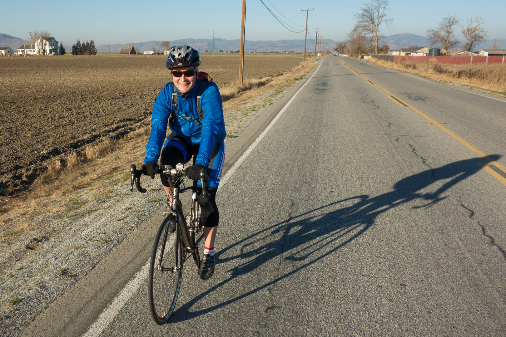 We pass another cyclist on Shore Road.